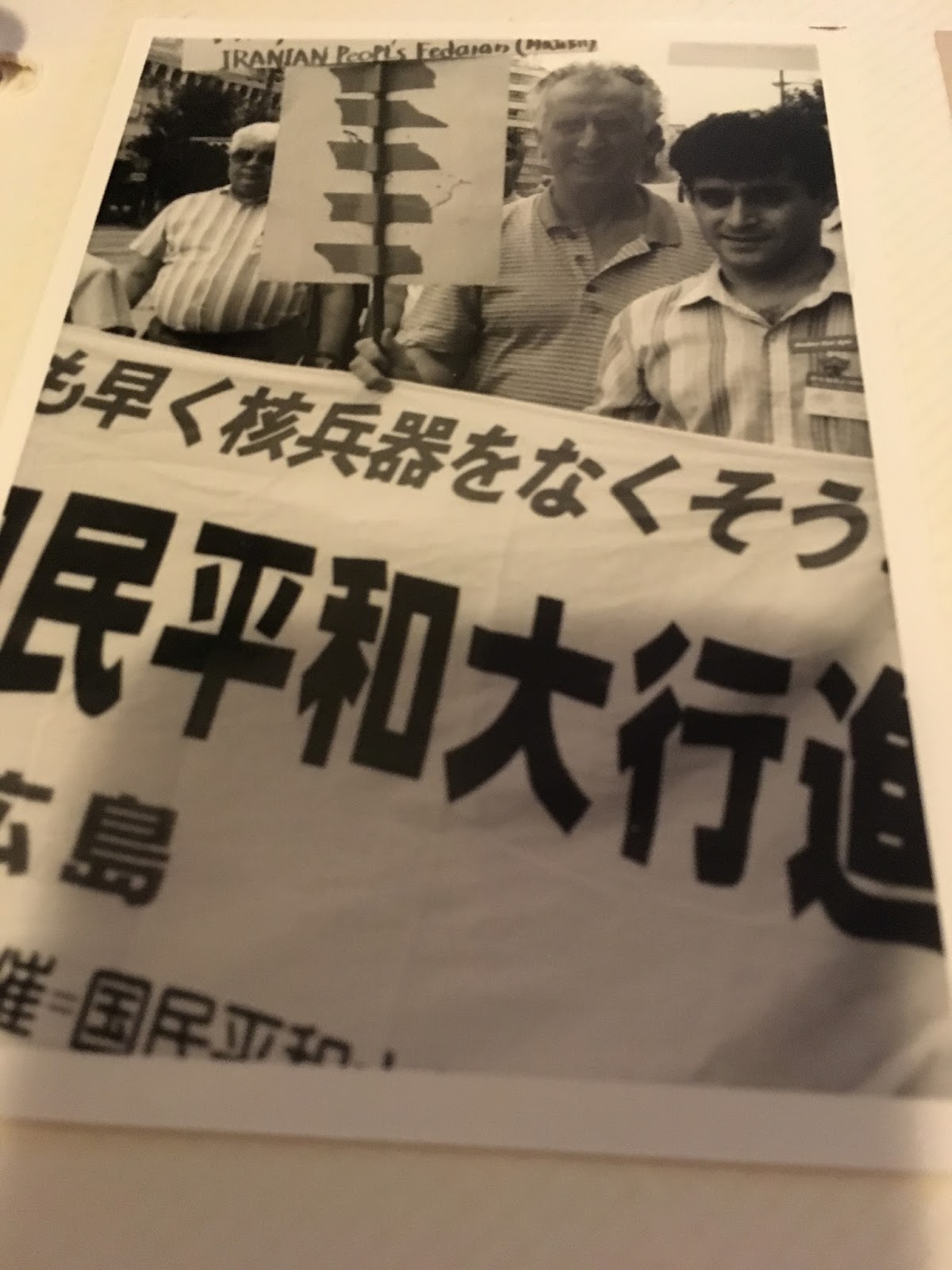 در آن زمان هاشمی رفسنجانی رئیس جمهور ، عادلی سفیر او در ژاپن و علی فلاحیان وزیر اطلاعاتش بود که سرگرم ترور مخالفین در خارج از کشور از جمله در ژاپن بو دند . در زمینه صلح چند سال پیاپی از ۱۹۸۶-۸۹ بطور رسمی در کنفرانس جهانی علیه بمب های اتمی و هیدروژنی در هیروشیما شرکت کرده و سخنرانی هم داشته ام ، که در کتابهای منتشر شده توسط سازمان دهندگان و روزنامه های ژاپنی آن زمان در ژاپن از جمله در « آکاها تا » ارگان حزب کمونیست ژاپن به چاپ رسیده است .
